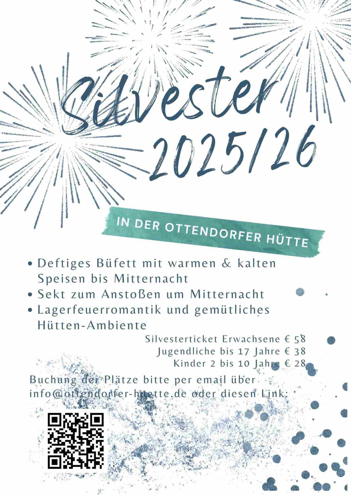 Suchst du für den Jahreswechsel einen Platz abseits der großen Städte und ohne viel Trubel? Dann bist du bei uns richtig! In der Ottendorfer Hütte könnt ihr die letzten Tage des Jahres in gemütlicher Atmosphäre verbringen, wandern gehen und den Jahresausklang an Feuertonne und mit einem guten Büfett zelebrieren.
