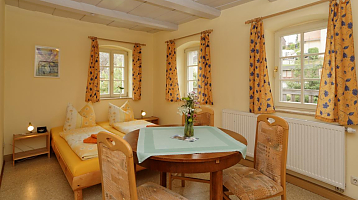 Das Haus verfügt über 6 Wohneinheiten mit 25 bis 35 m² für zwei bis vier Personen, jeweils mit 2 Schlafräumen und Bad (im Dachgeschoss zwei Schlafebenen). Bis zu 24 Gäste können hier gemeinsam Urlaub machen.