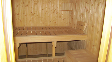 Im Kellergeschoss befindet sich neben den Heizungsräumen auch eine Sauna, welche durch bis zu 12 Personen genutzt werden kann.